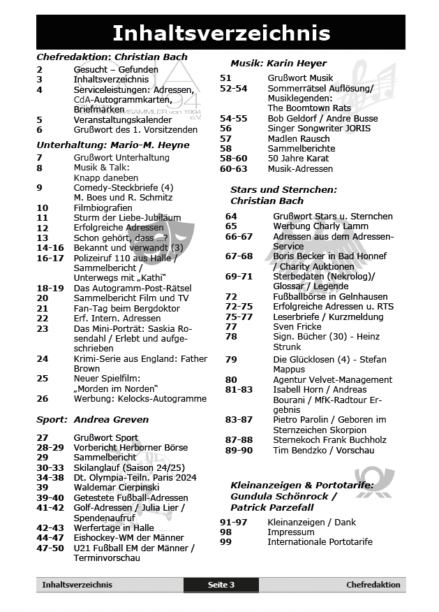 Die „Autogramm-Post“ ist eine nichtkommerzielle Fanpublikation vom ‘Club der